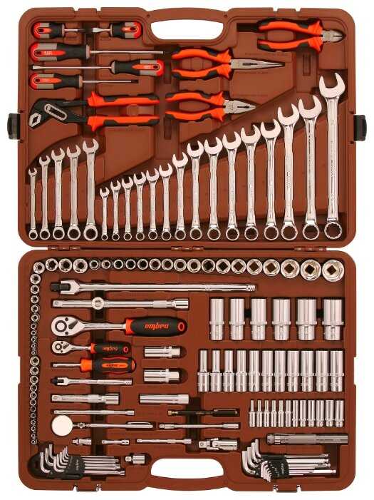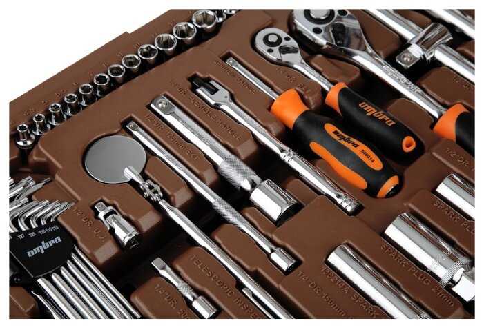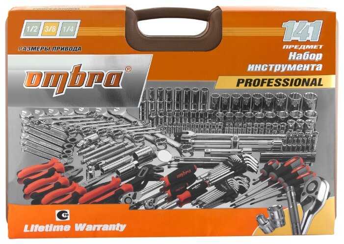 | Дополнительная информация : | Набор инструмента универсальный 1/4", 3/8" и 1/2"DR, 141 предмет Ombra |