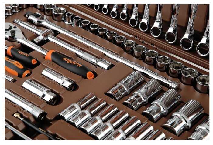 Набор подкупил обилием головок и ключей всех размеров, в целом я доволен приобретением. Удобно, что всё находится в одном кейсе и на своих местах. Транспортировать конечно не очень удобно, но тут особых альтернатив нет, любой набор с таким количество предметов будет тяжёлым. Трещётки идут сухими, но я их сразу забил смазкой, так по ощущениям комфортнее и скорее всего будут дольше служить. Не могу поставить 5 звёзд, но субъективно это набор достоин твёрдой четвёрки.