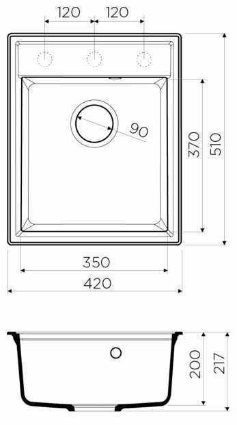 - - Довольно маленькая чаша мойки по длине и ширине (35 на 37 см), российское производство, старомодный комплектный сифон сомнительного качества.