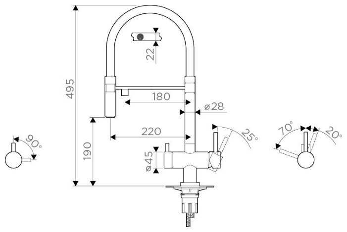 - + Съемная лейка, подключение фильтра с питьевой водой