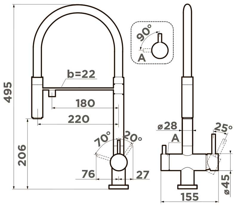- + Стильный, шланг извлекается из паза, для обмытия раковины.