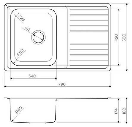 обычная мойка без изысков. главное достоинство - толстый металл в отличие от дешевых. можно спокойно ставить измельчитель . никаких чудес дизайна...