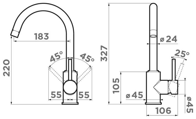 - тип излива: поворотный