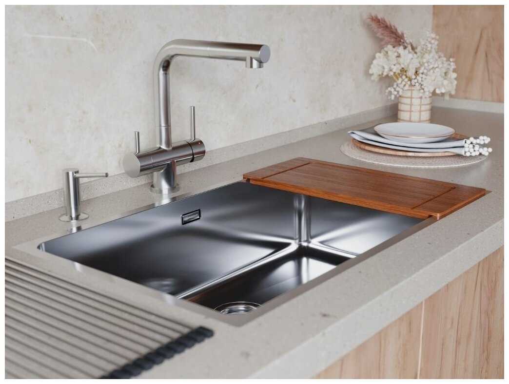 У меня узкая столешница и к ней, как нельзя лучше, подошла прямоугольная мойка. Модель из прочного сталя. Легко зафиксировали мне её на выходных, смотрится статно. При мытье посуды нет шума стука воды о поверхность мойки и на ощупь приятная