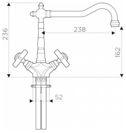 Очень оригинальный дизаайн этого смесителя. Мне сразу привлек внимание этот смеситель. У него хороший, верхний изгиб по которому течет вода. С двумя вентелями очень удобно в использовании, даже регулировать воду комфортно. Вентеля открывания и закрывания достаточно плавные, все на ходу, даже мокрыми руками удобно пользоваться. Смеситель сделан из качественной латуни, что уже говорит о его качестве. Все здорово с этим смесителем, все норм.
