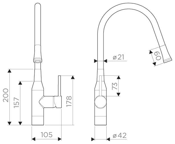 - + Классный дизайн, удобная конструкция: гибкий излив без выдвижной лейки — помыть раковину, налить воду в кастрюлю, если раковина занята — без лишних телодвижений