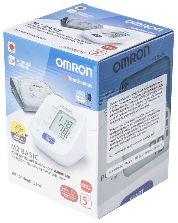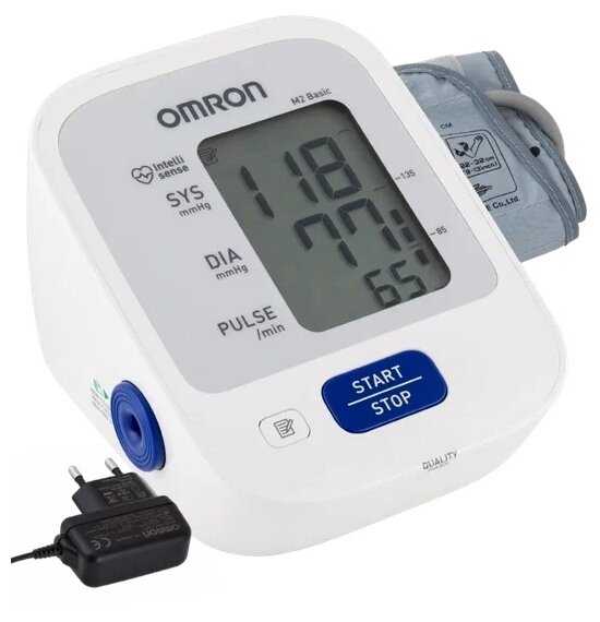 - + Тонометр OMRON M2 Basic ARU с адаптером автоматический HEM-7121-ARU показал себя с наилучшей стороны. Может работать и от сети и от батареек. Удобный в работе тонометр. Автоматический, довольно простой в использовании тонометр. Компактный тонометр и присутствует большой информативный цифровой дисплей.