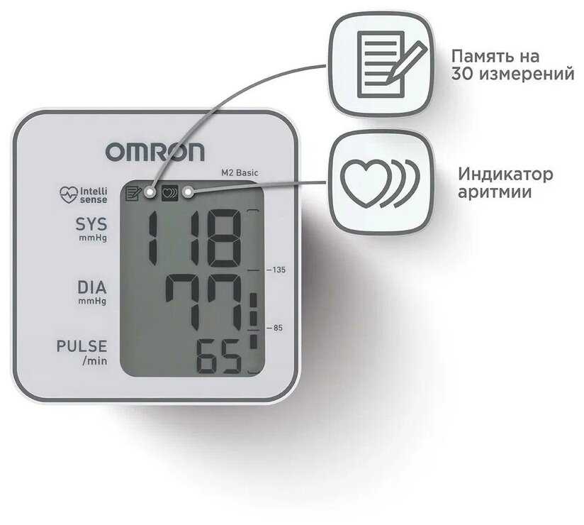 Функциональность: Модель оснащена датчиком аритмии, памятью на 30 измерений и крупным дисплеем, что делает её весьма функциональной.