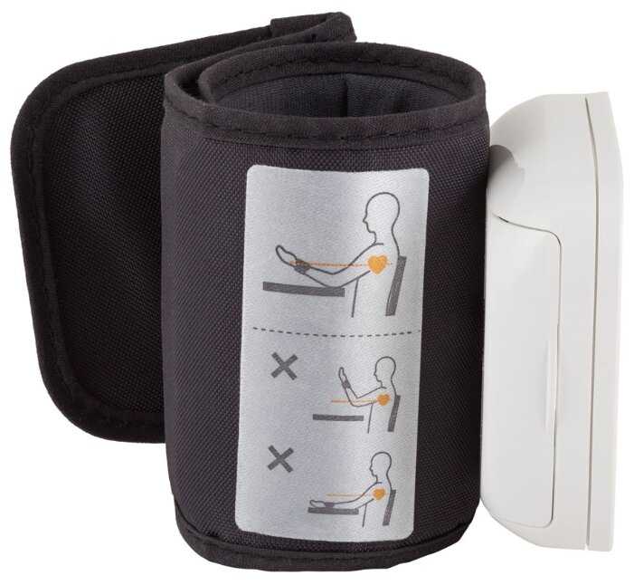 У тонометра простое и удобное управление, он сохраняет в памяти 30 последних показаний. К преимуществу модели можно отнести возможность выбора источника питания – от батареек или от сети, благодаря наличию адаптера в комплекте. Прибор совместим с приложением OMRON connect, которое позволяет хранить результаты измерений в смартфоне или планшете и контролировать их изменение. Веерообразная манжета делает измерение комфортным и безболезненным, ее стандартный размер (22–32 см) подойдет большинству пользователей. Индикатор правильной фиксации манжеты появляется на дисплее при правильном наложении манжеты на плечо, а индикатор аритмии регистрирует нарушение сердечного ритма.
