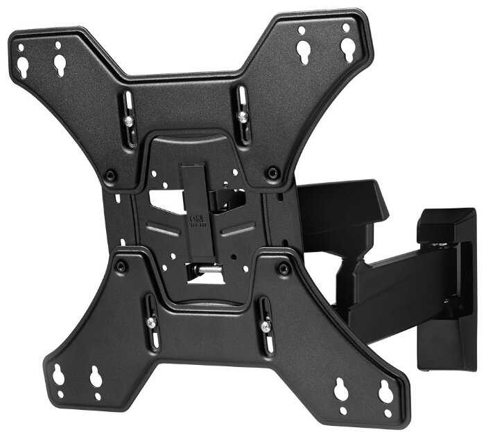 Кронштейн изменяет уровень по горизонтали в зависимости от того в какую сторону его повернуть. Причем, как видно на фото, угол немного отличается. Ровно телевизор получается только есть...