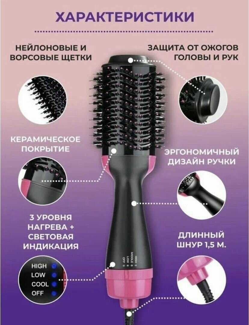 - Позволяет выполнять укладку одной рукой, в отличие от раздельного использования фена и расчески.