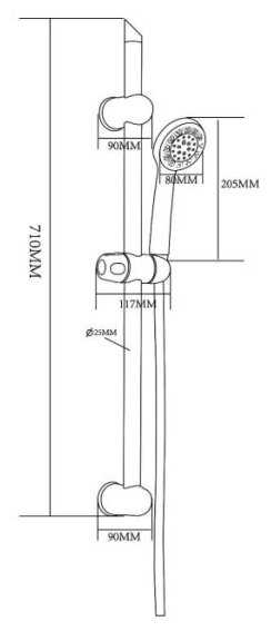 | Комплектация : | держатель лейки, душевая штанга, лейка, настенный держатель, прокладки, шланг |