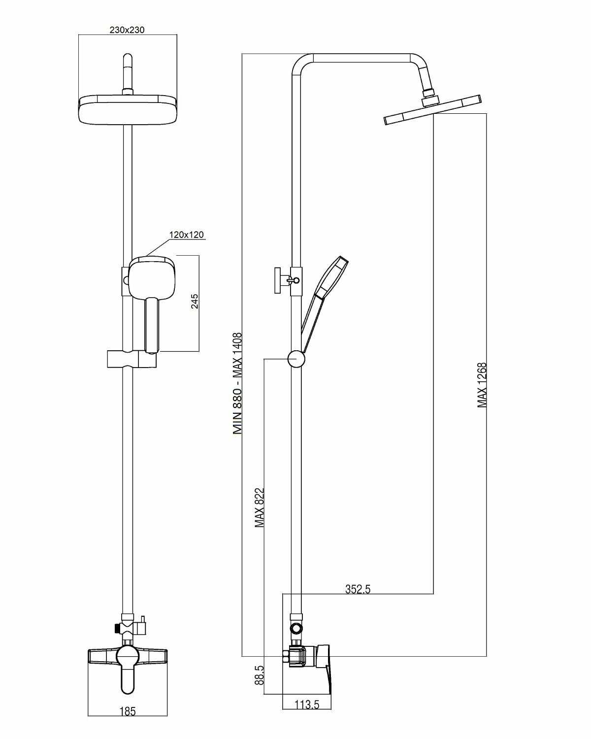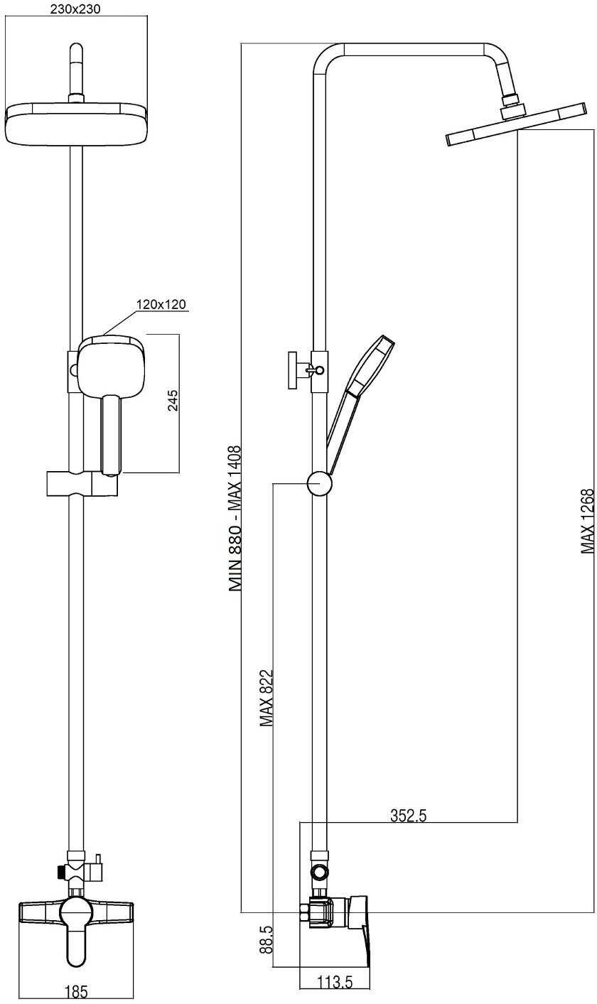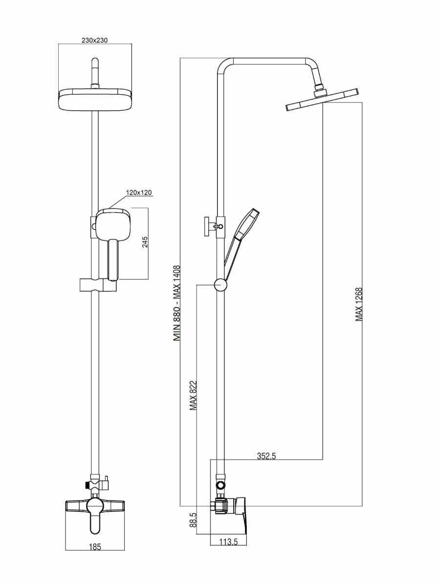 Комплектация : | верхний душ, держатель лейки, душевая стойка, душевая штанга, излив для набора воды, лейка, набор эксцентриков, настенный держатель, отражатель, прокладки, ручной душ, смеситель, шланг, эксцентрик |