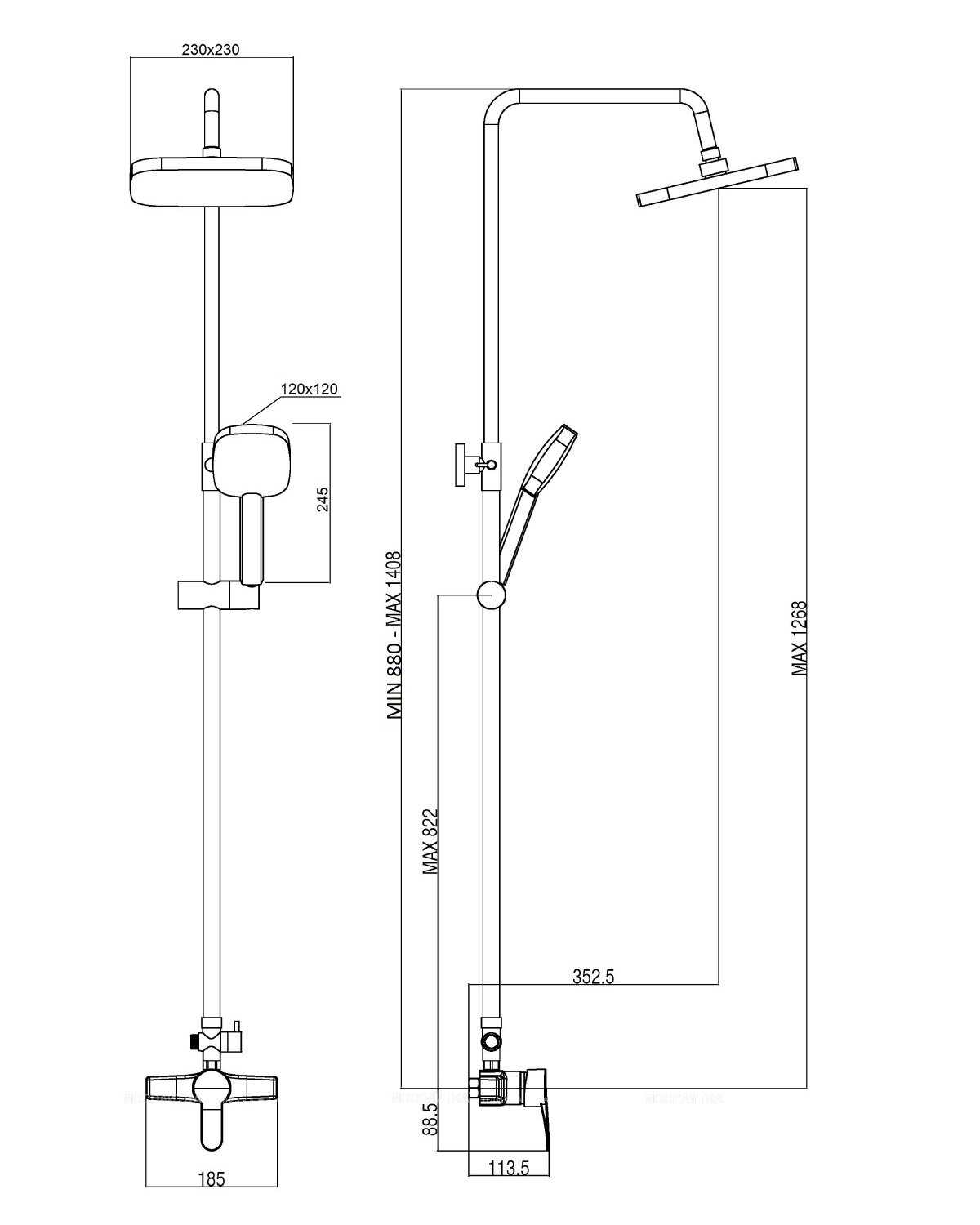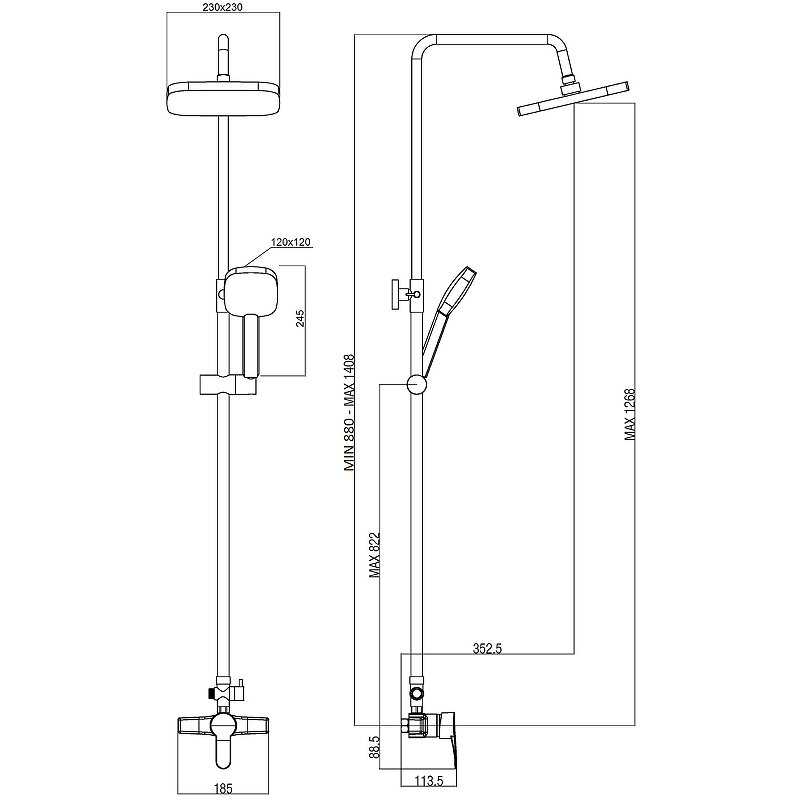 Особенности : | S-образные эксцентрики, антиизвестковое покрытие, держатель душевой лейки, защита от скручивания, регулируемый верхний душ |