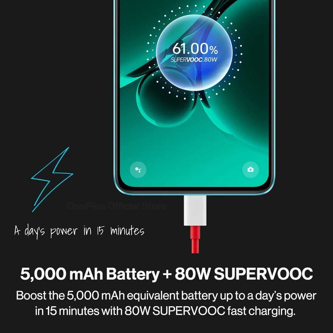 - Быстрая зарядка на 80 Вт с емкостью аккумулятора 5000 мАч: