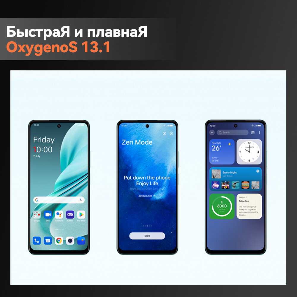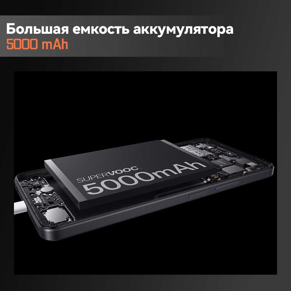 oxygen на 14 андроиде великолепие, лучшая система которую я пробовал в телефонах, проц что то типо G99, чуть энергоэффективнее, но чуть слабее, в черном цвете выглядит дорого богато, крышка отзеркаливает, но весь из пластика (впрочем что ожидать от бюджетника), есть стерео но полуторка, 1 динамик основной и 1 разговорный (который ожидаемо тише), тем не менее звук шедевральный, думаю такой звук в телефонах не найдете, особенно за такую цену (опишу в комменте), камера хорошая, но минусы есть. Батарея чистая десяточка, я на протяжении всего дня пользовался телефоном в разных задачах, утром и днем по работе, вечером несколько часов играл в тяжелые игры (Grid autosport. Asphalt unite. Racing Master. Ace racer (по приколу скачал и стар реил)), смотрел ютуб еще параллельно иногда, короче за 24 часа у меня осталось еще 22% заряда, за ночь ушло всего 2%, и еще на пол дня хватило, пока не осталось 2% всего, так что 2 - 2.5 дня в офисном режиме телефон протянет. с зарядкой 33w телефон заряжается за 1 час 10 минут от 15 до 100%, во время заряда нагревается, на 80% уже спокойнее и не такой нагрев