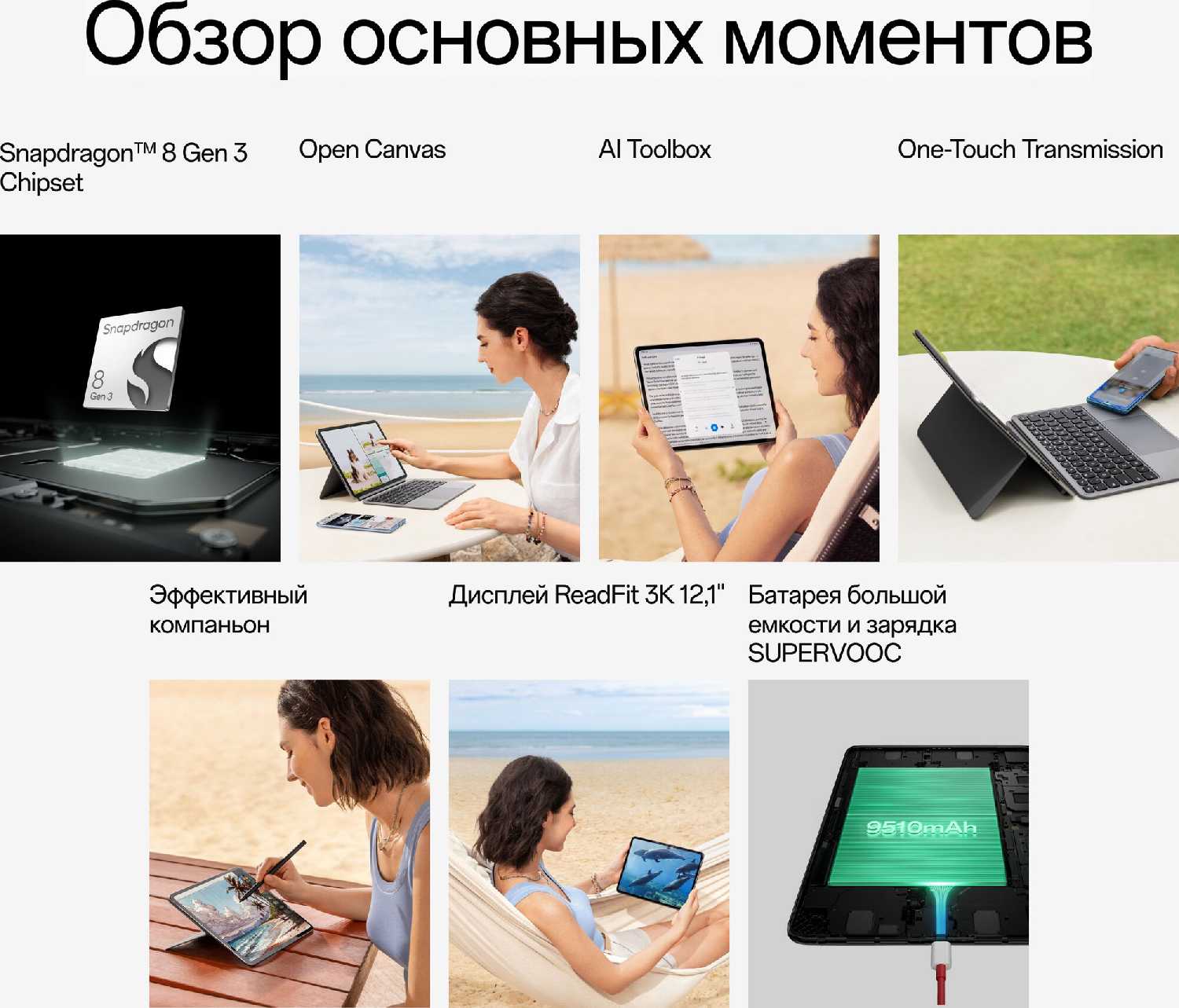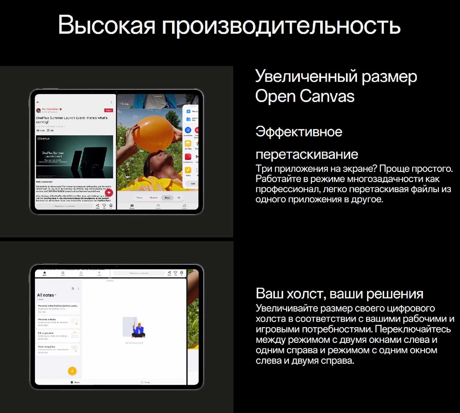 - Система быстро обновляется до Android 15 с OxygenOS, приложения запускаются мгновенно, подходит для многозадачности и замены ноутбука.