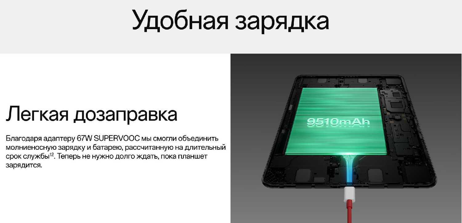 Аккумулятор на 9510 мАч обеспечивает отличную автономность: до 10 часов экрана при смешанном использовании, включая игры на 120 FPS, с остатком 10-15%. Без игр и на средней яркости заряд хватает на 4 дня с 14 часами экрана, а для рабочих задач — раз в неделю. Умная зарядка работает эффективно, и планшет не нагревается сильно. Пользователи подчеркивают, что это один из сильных аспектов устройства для длительного использования. -