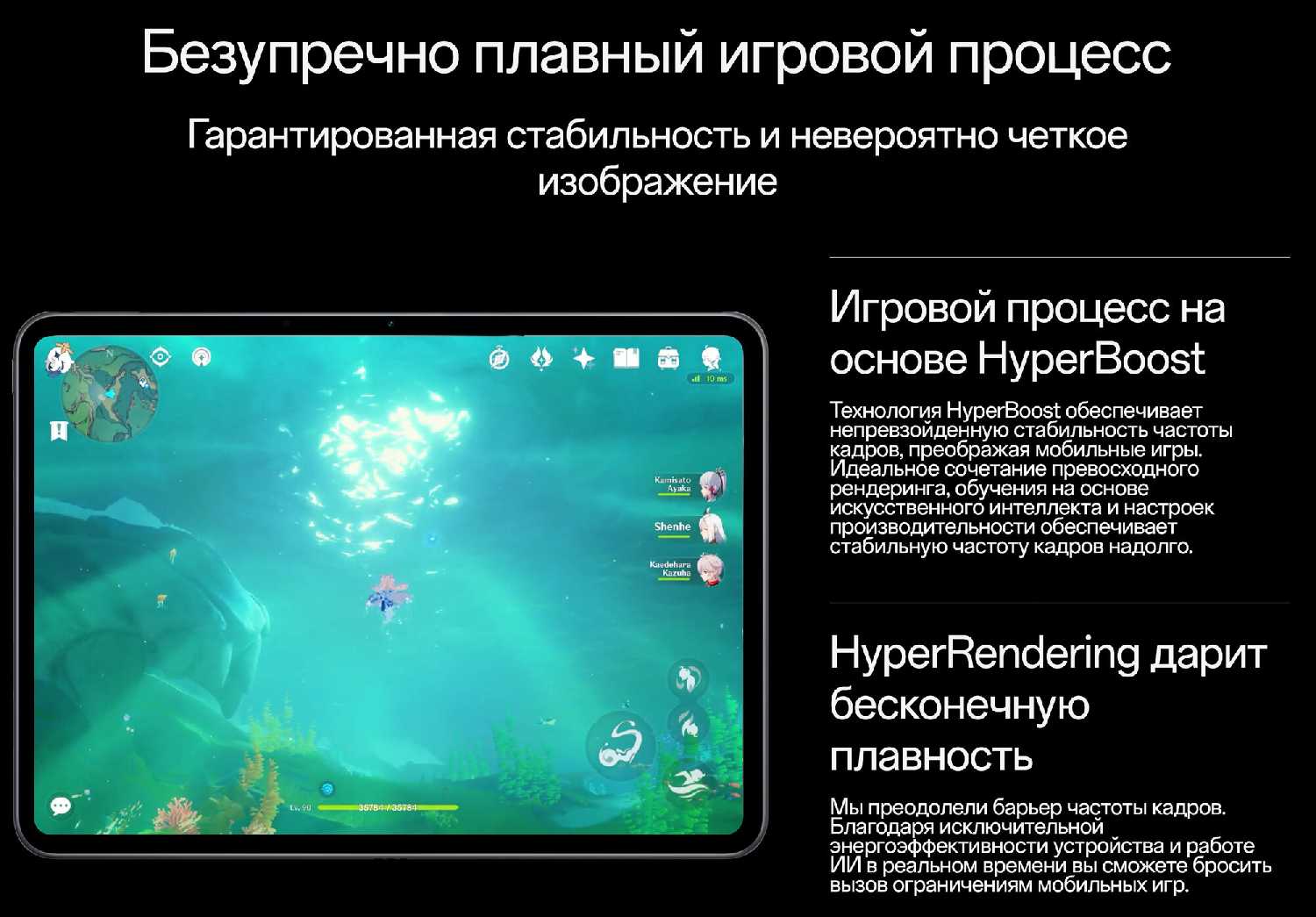 Производительность и скорость работы: Большинство пользователей отмечают OnePlus Pad 2 как самый мощный планшет на Android на момент выпуска благодаря процессору Snapdragon 8 Elite. Устройство справляется с требовательными играми вроде PUBG Mobile на максимальных настройках с 120 FPS и плавностью 144 Гц. Оперативная память в 8–16 ГБ позволяет запускать множество приложений без лагов, а хранилище 256–512 ГБ обеспечивает пространство для файлов. Система OxygenOS на базе Android 14 (с обновлением до 15) работает шустро, интерфейс отзывчивый даже при многозадачности. Пользователи, перешедшие с Xiaomi Pad 6S Pro или Honor Pad 6, подчеркивают заметное ускорение в повседневных задачах. Для редактирования документов и создания музыки планшет подходит, но сенсорный ввод замедляет процесс по сравнению с клавиатурой. В играх оптимизация неидеальна: не все тайтлы заполняют экран полностью, требуя разделенного режима. Процессор не нагревает корпус сильно — под нагрузкой устройство теплеет, но остается комфортным. Долгосрочные тесты (6+ месяцев) показывают стабильную производительность без вылетов. Обновления прошивки улучшают скорость, хотя начальная установка иногда тормозит без VPN. Единичные случаи зависаний на старте связаны с европейской версией, но после обновлений проблема исчезает. Для профессионалов планшет тянет офисные приложения, но уступает ноутбуку в скорости ввода. Геймеры хвалят отсутствие задержек в динамичных сценах. Автоматическое управление RAM расширяет ее до 16+12 ГБ виртуальной. В целом, 80% отзывов подтверждают флагманский уровень производительности за цену ниже iPad.