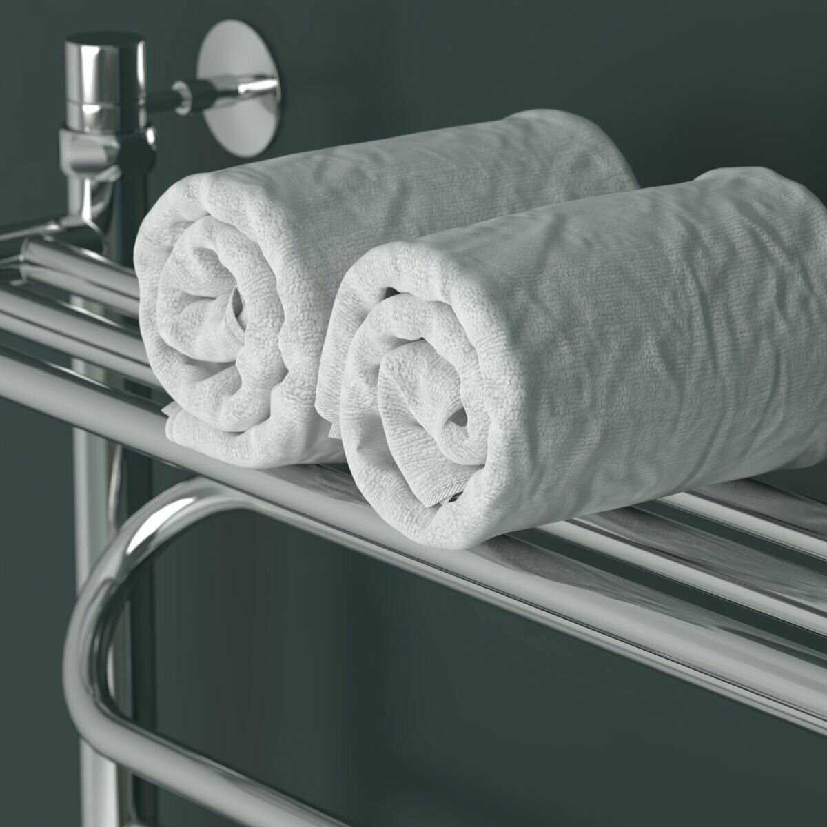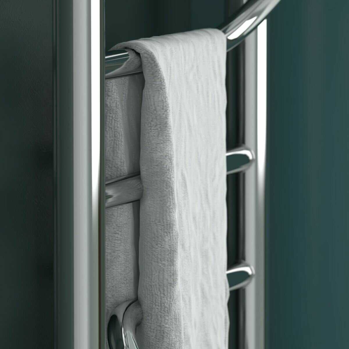 - + Полотенчик просто бомба.Красивый и тяжёленький.Комплектация полная,уголки,прокладочки,крепление.Даже салфетка есть для протирки полотенца после установки.