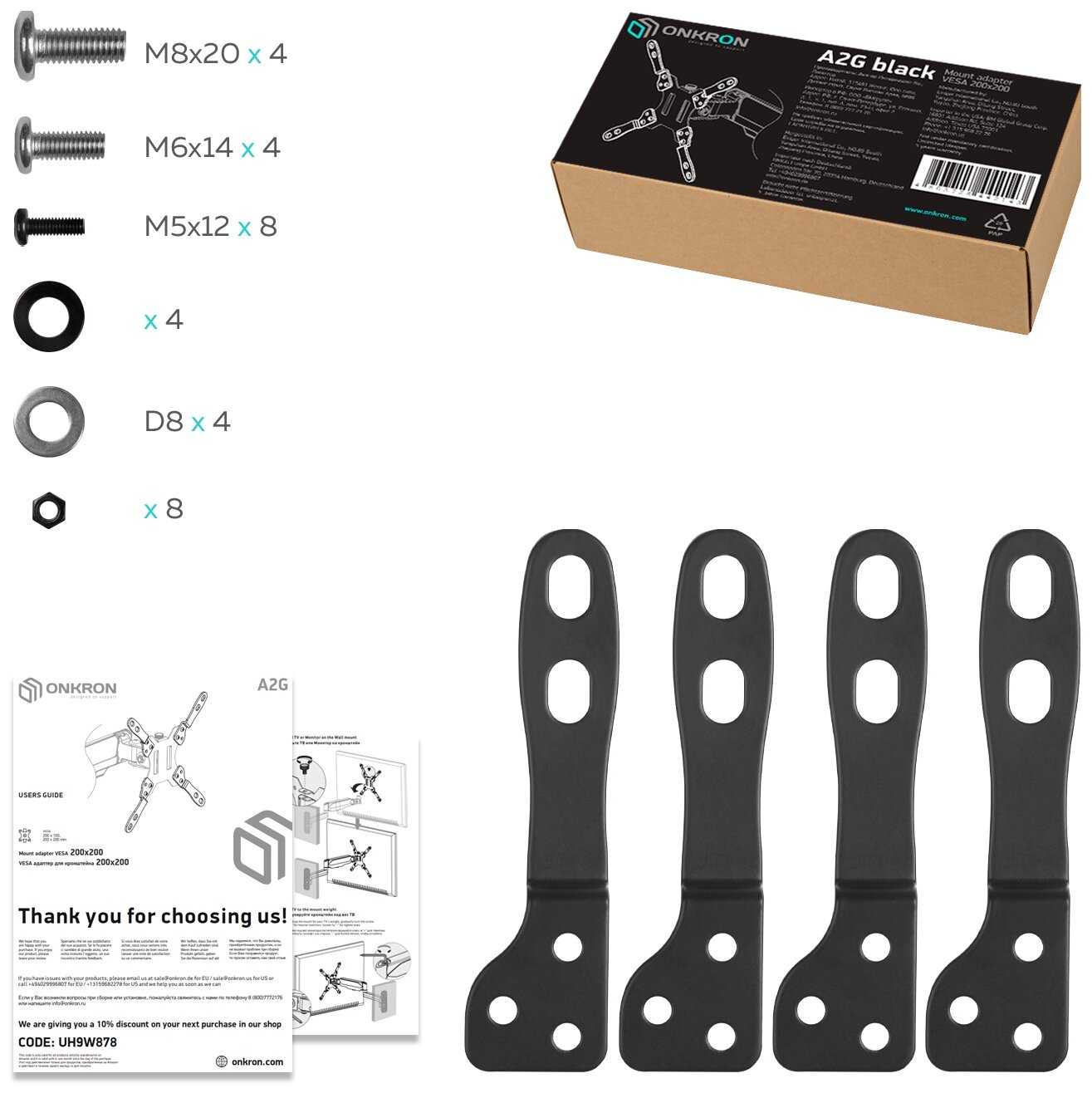 Комплектные болты (М6, М8 длиной 20 мм) часто не соответствуют глубине посадочных мест. Для телевизоров Samsung, LG и других брендов пользователи докупали метизы длиной 25-30 мм. Резьба М4, характерная для мониторов, в комплекте отсутствует — потребуются собственные болты или дополнительные шайбы для компенсации люфта. -