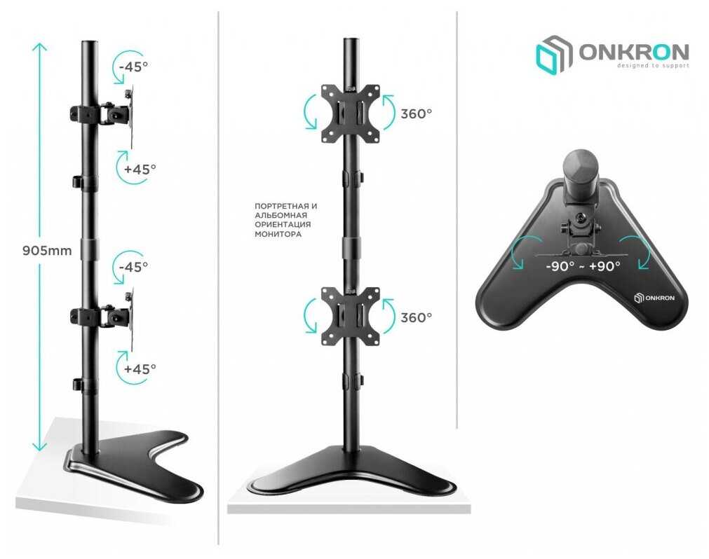 | Дополнительная информация : | Расстояние от основания: 88мм, вращение: 360°, высота столба: 905мм, портретная/альбомная ориентация экрана, возможна дополнительная фиксация при установке в отверстие стола. |