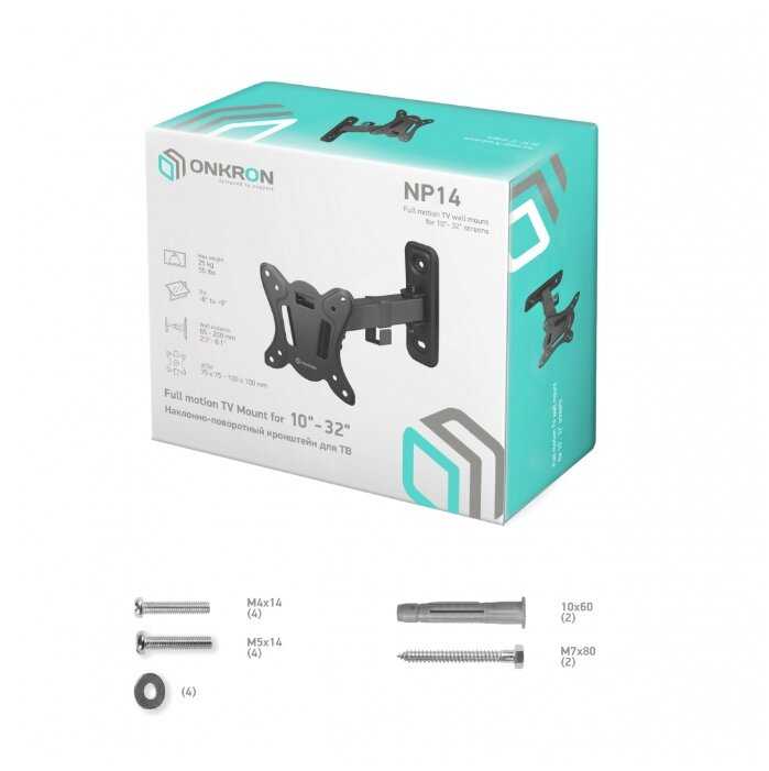 51 отзывов пользователей o ONKRON для телевизора 10"-32" наклонно-поворотный NP14
