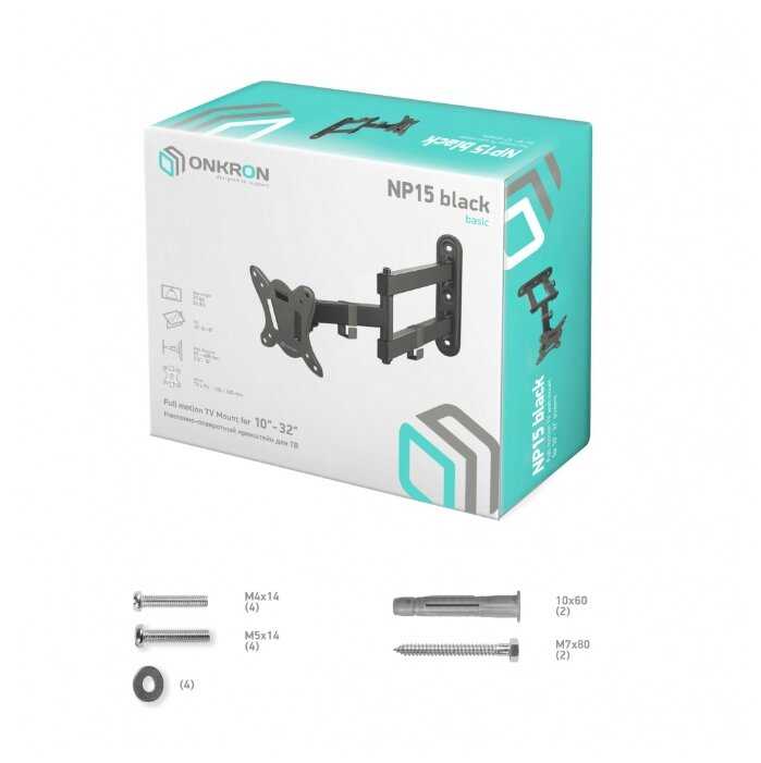 86 отзывов пользователей o ONKRON для телевизора 10"-32" наклонно-поворотный NP15