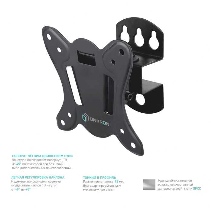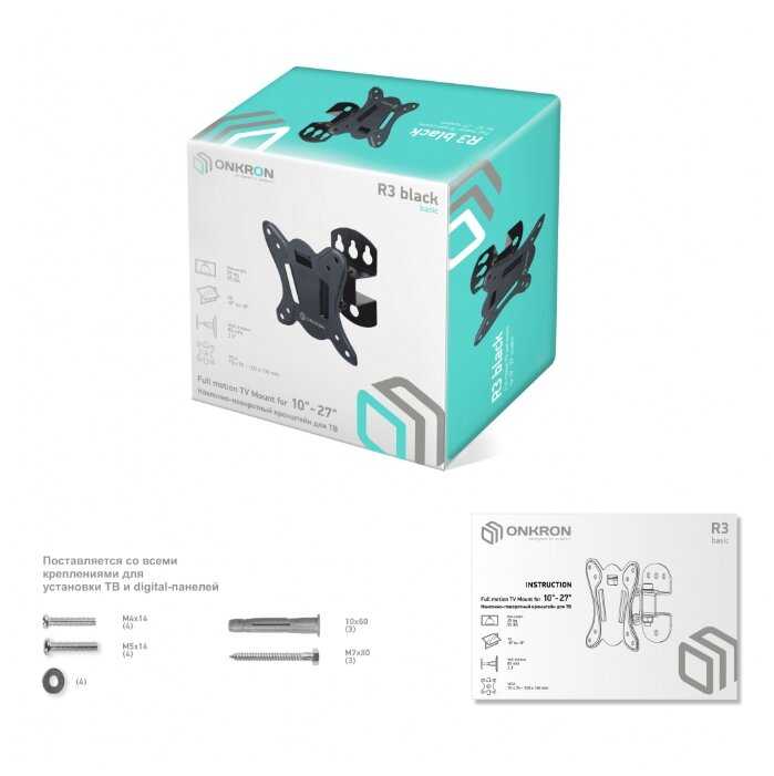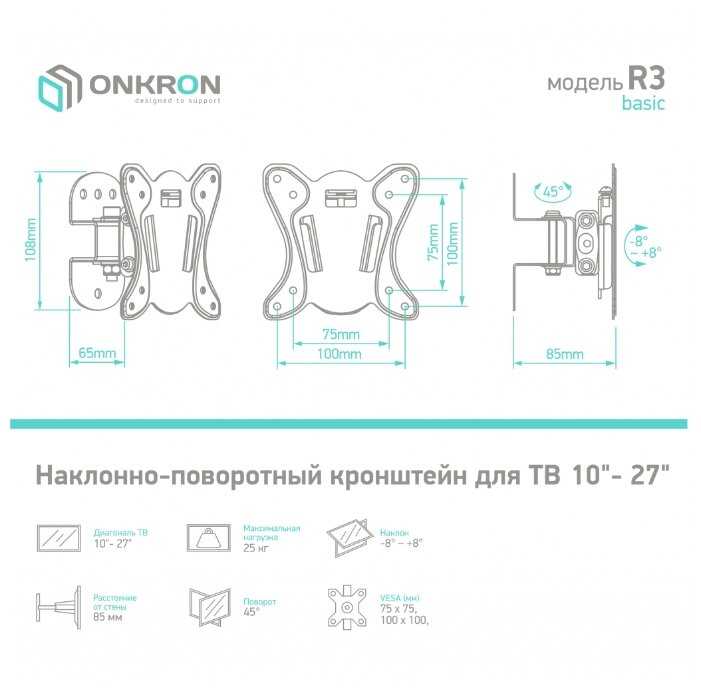 Обзор ONKRON для телевизора 10"-32" наклонно-поворотный R3*: