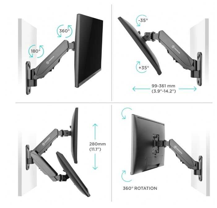 - Подходит для мониторов 24-34 дюймов (до 7-9 кг), позволяет вертеть как угодно для комфортного просмотра.