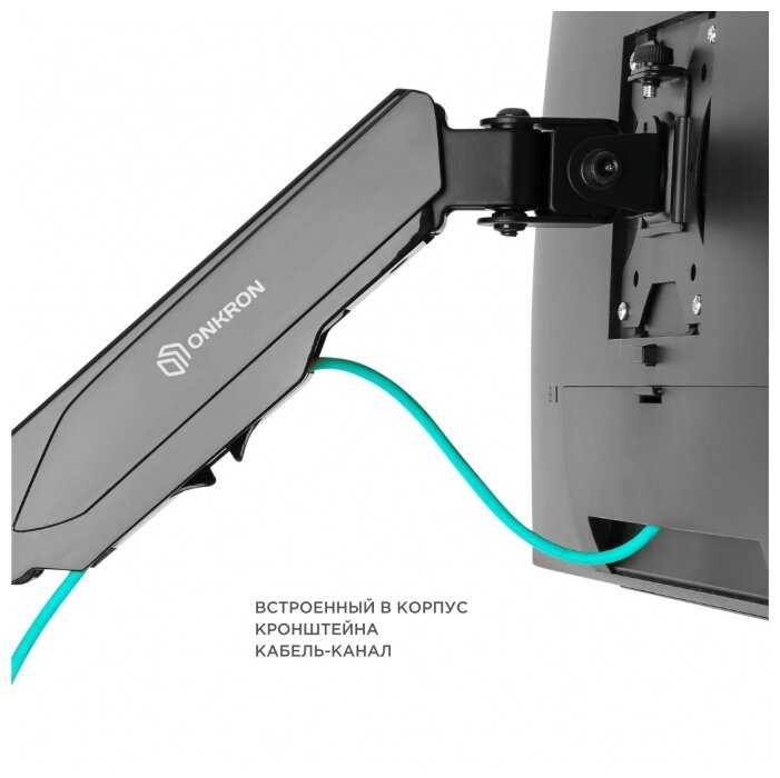 - Освобождает рабочую поверхность, делает setup удобнее для нескольких мониторов или кухонного ТВ.