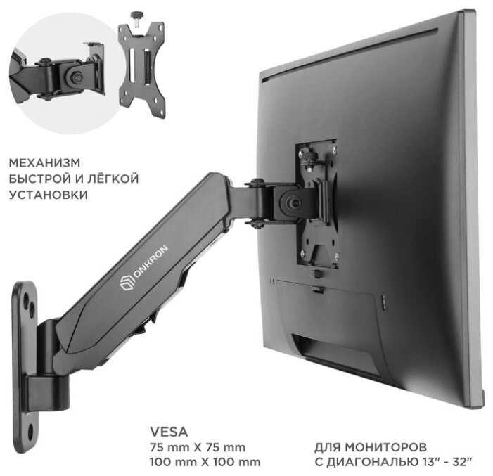 Отзывы пишу редко. Этот крон - пример качества начиная от упаковки и инструкции до эксплуатации (имел опыт других производителей). Использовал для крепления широкого (21:9) монитора LG на стену, т. к. в моем случае это гораздо удобнее и вариативнее чем ставить на штатную подставку, которая занимает место на столе. Установил буквально за 15-20 минут с шуруповертом и сверлом на 10 по бетону. Был приятно удивлен качеством. Изначально немного проглядел и купил более простую модель без дополнительного плеча (G150), но в принципе все устроило — моник разместился очень удобно. Когда желание и возможность совпадут — куплю G150, а старый крон уйдет на второй или третий монитор.