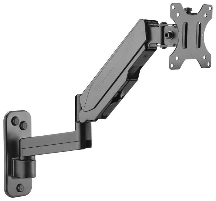 Просто устанавливается и легко настраивается под очень плавный, лёгкий ход. Экономит место на рабочем столе, одновременно значительно увеличивает комфорт работы. Есть органайзер для кабелей. В комплекте крепеж под все варианты vesa креплений указанного размера (винты разной длины и диаметра, прокладки, упоры). Настенное крепление и под кирпич/бетон, и для дерева.
