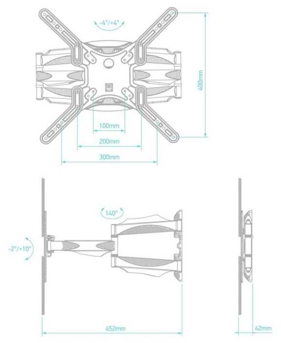 - Механизм позволяет поворачивать телевизор на 140° по горизонтали и регулировать наклон по вертикали.
