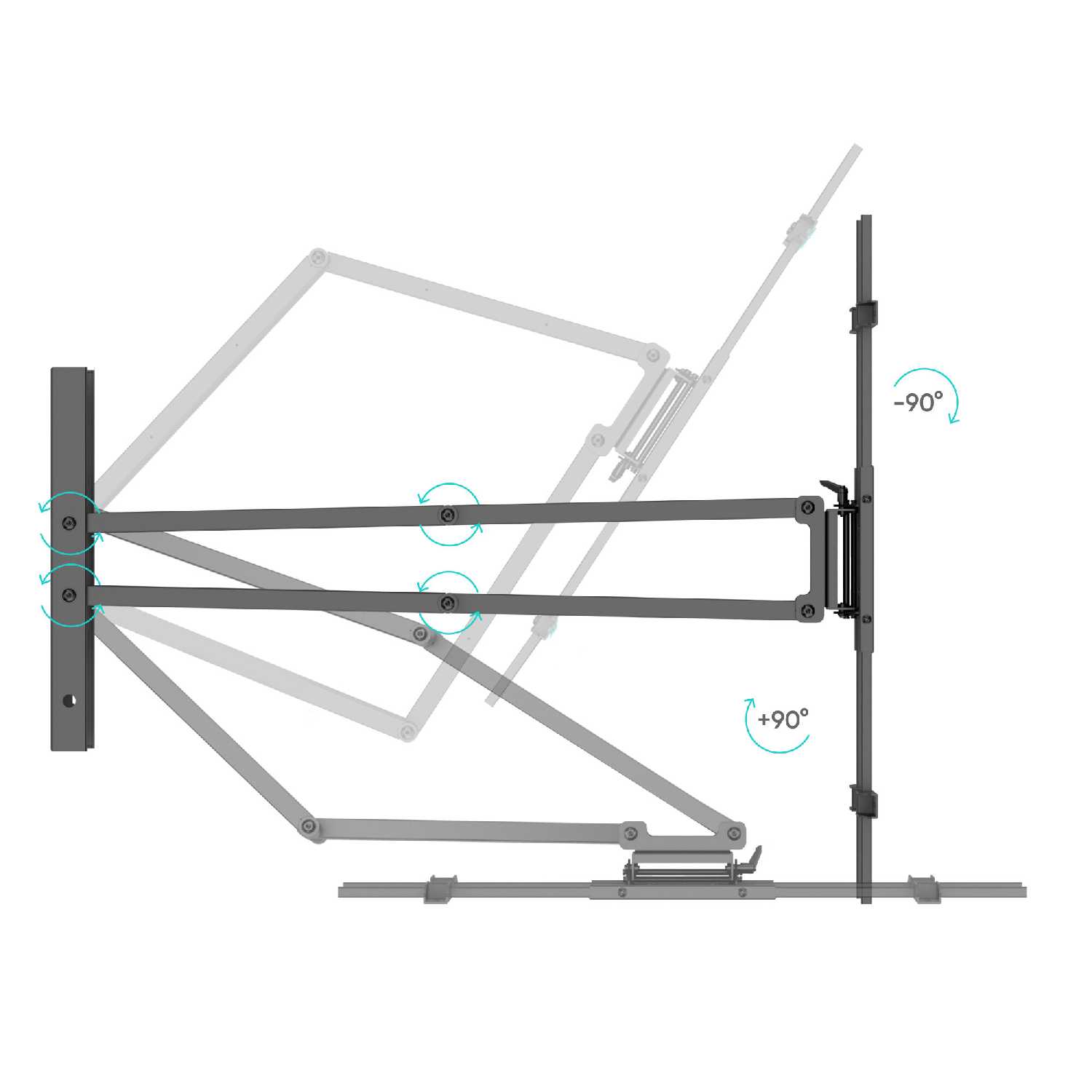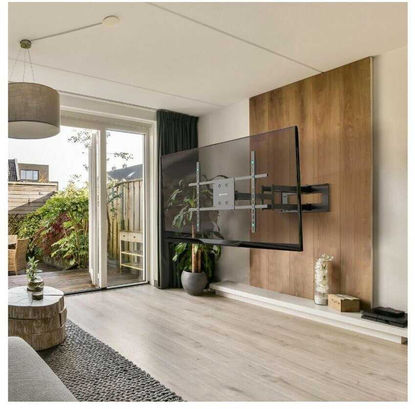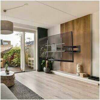 - + Самый мощный кронштейн на момент покупки, выдерживает очень большую нагрузку на плечо. Большое количество конфигураций VESA. Подойдёт под телевизоры практически любых габаритов и веса.
