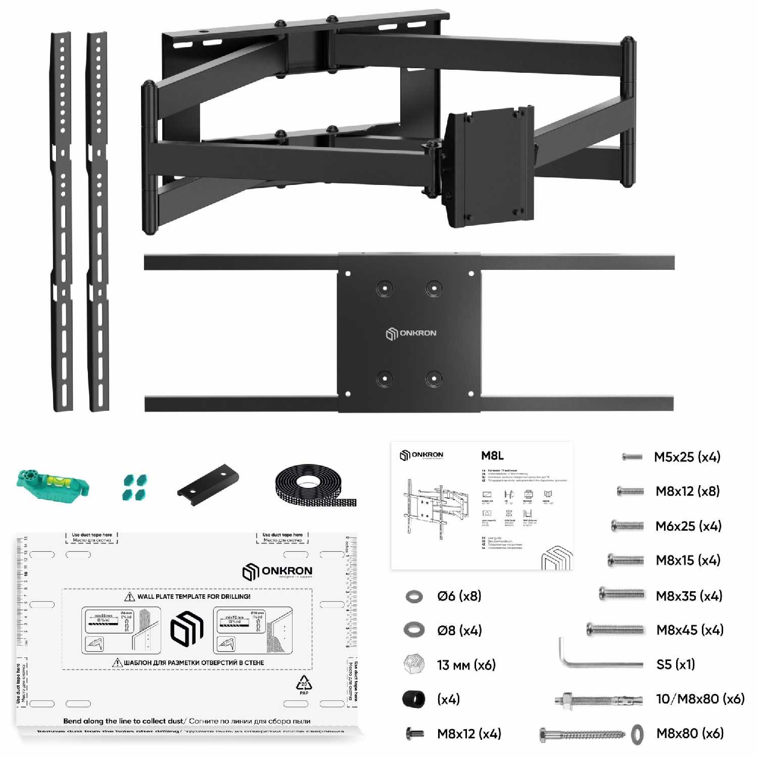 Дополнительная информация : | Комплектация: кронштейн для телевизора, полный комплект ключей и крепежа для установки телевизора, система организации проводов, подробная инструкция на русском языке. |