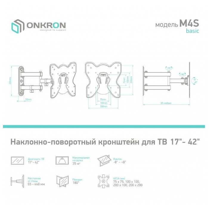 Обзор ONKRON M4S наклонно-поворотный, черный - мнение пользователей*: