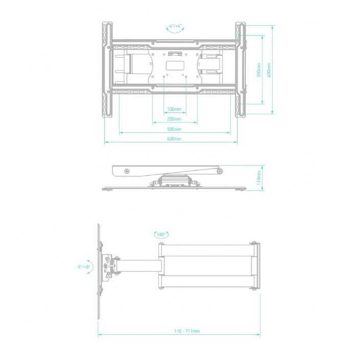 - Телевизоры до 104 дюймов не упираются в стену при повороте на 90°, благодаря длине рычага.