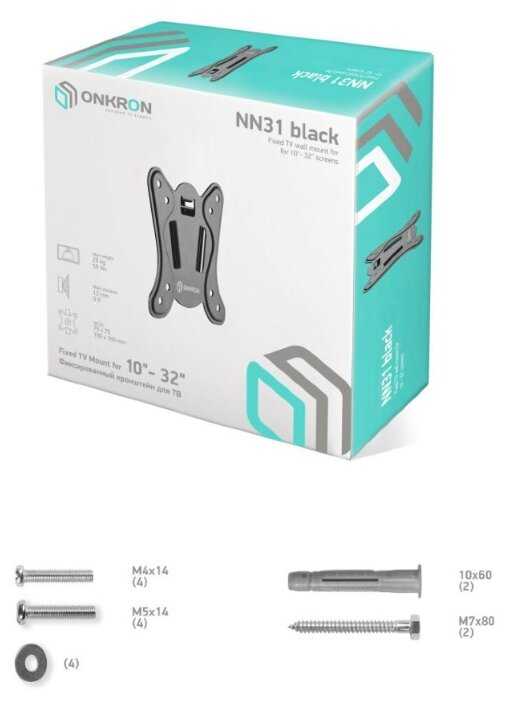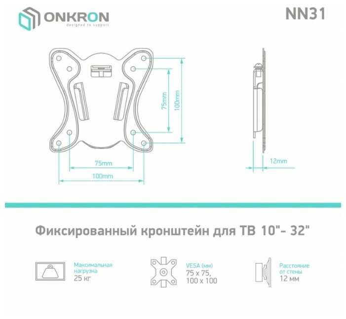 | Дополнительная информация : | Кронштейн ONKRON NN31 VESA75-100 до 25кг фикс/черн. для телевизора |