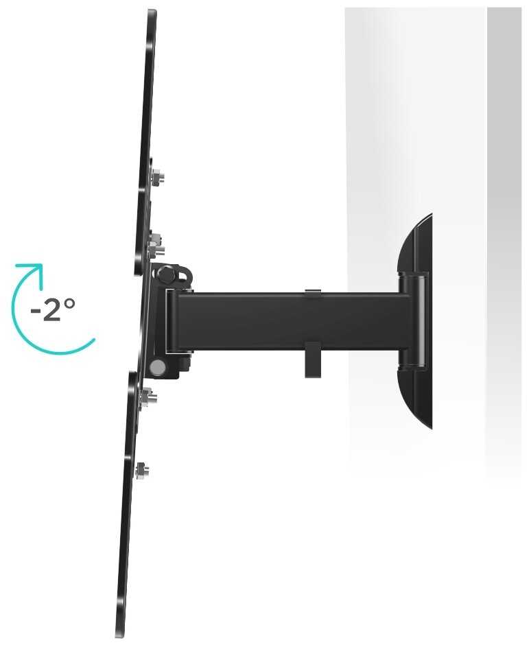 - Для больших диагоналей (55-65 дюймов) верх отходит от стены, создавая постоянный наклон 5-10 градусов.