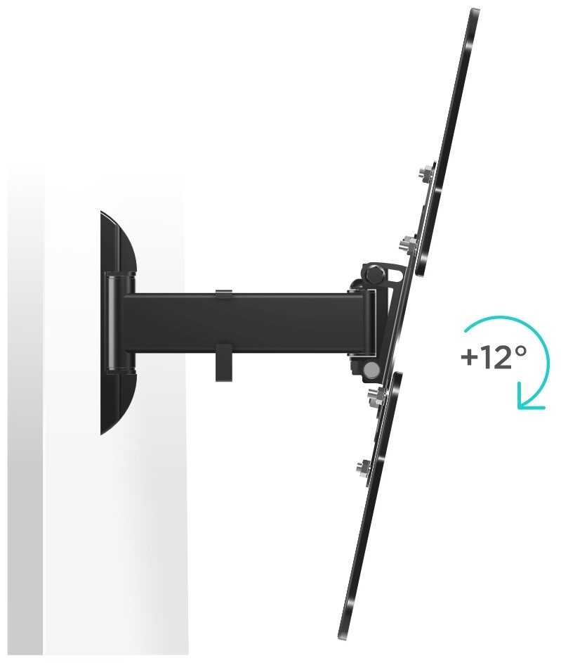 - Наклон на 12 градусов вверх/вниз, позволяет отодвигать от стены для подключения кабелей или флешек.
