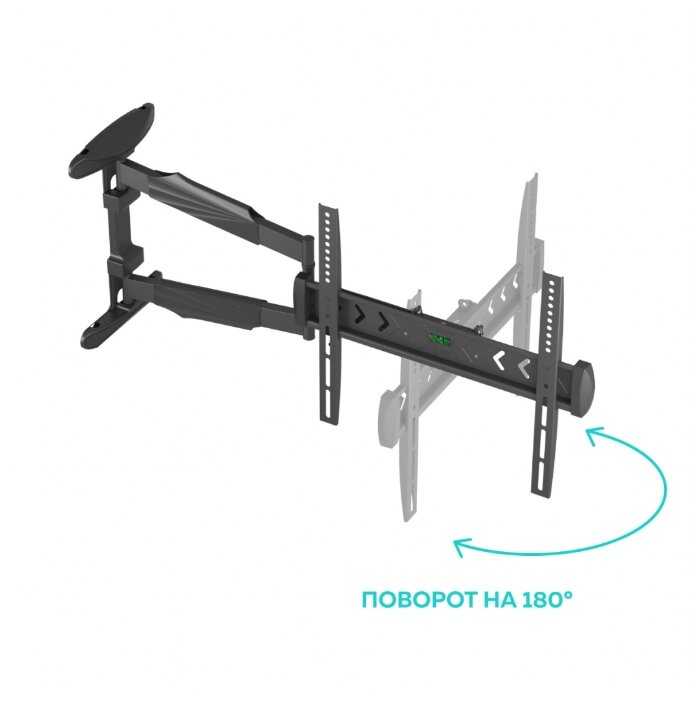 - Поворот на 180 градусов позволяет развернуть телевизор перпендикулярно стене, удобно для просмотра с разных позиций (диван, стол).