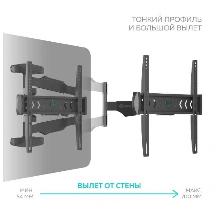 - Выдвижение до 70 см от стены обеспечивает доступ к кабелям и гибкость в использовании, хвалят за это в большинстве отзывов.