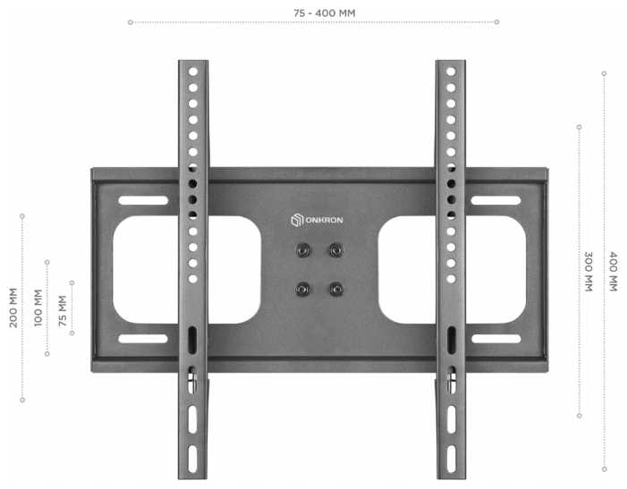 - Несоответствие высоты VESA (для смещенных отверстий ТВ низко/высоко).