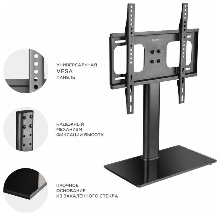 - Толстое каленое стекло обеспечивает стабильность даже для ТВ 55-58 дюймов (многие пользователи отмечают, что кошка не опрокинет).