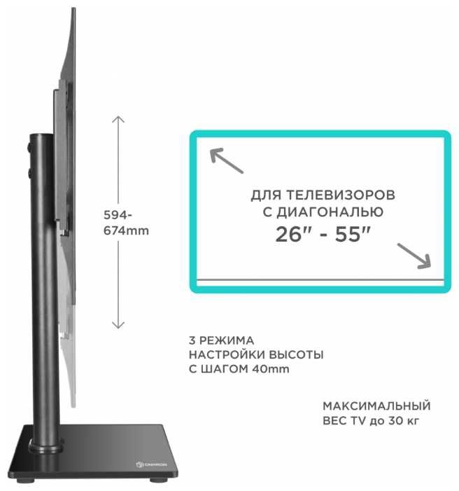 - Низкая максимальная высота для больших ТВ (50-55" висят низко над диваном).
