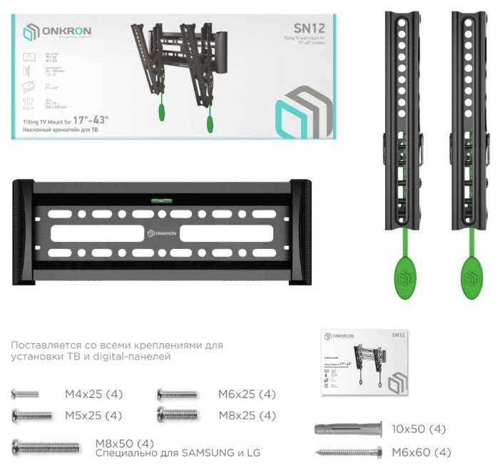 - + Изделие выполнено качественно, подходит для телевизоров с диагональю от 17 до 43 дюймов. В комплекте - полный набор всего необходимого. Упаковка не броская, внутри - все в запечатанных пакетах. Инструкция по...
