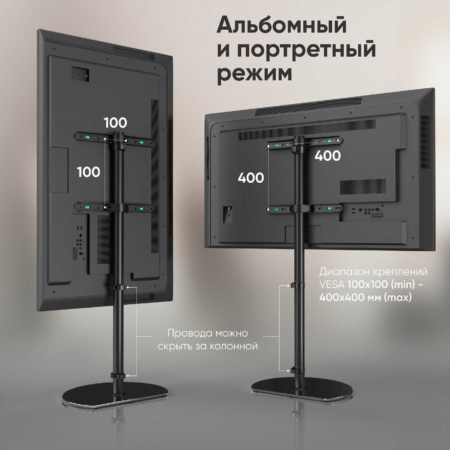 Дополнительная информация : | Комплектация: Стойка для телевизора, комплект ключей и крепежа для установки ТВ, эластичные защитные вставки в фирменном цвете, клипсы для скрытой фиксации проводов за колонной, подробная инструкция на русском языке |