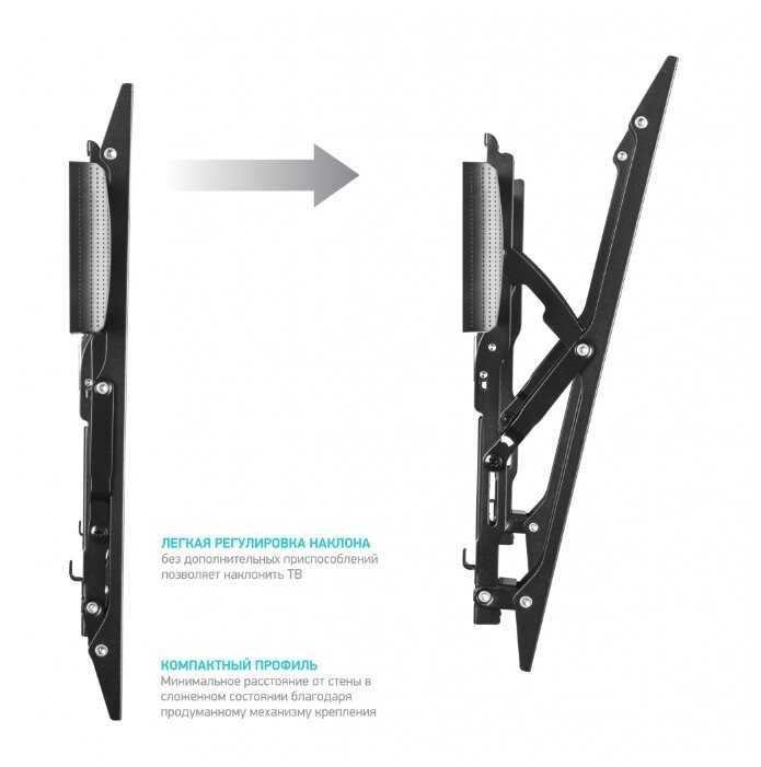 - Не фиксирует вертикаль или промежуточные углы, ТВ соскальзывает под весом (65"+).
