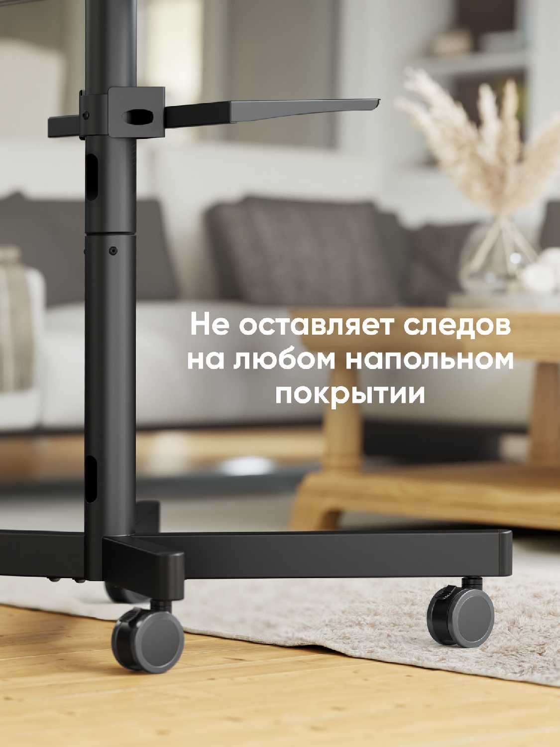 - + Оказалось, что достаточно добротно сделано. Ожидал, что будет похуже за свои деньги. Металл не тонкий, не гнется, стоит устойчиво. На ножках есть стопари, что не дают убежать телевизору.